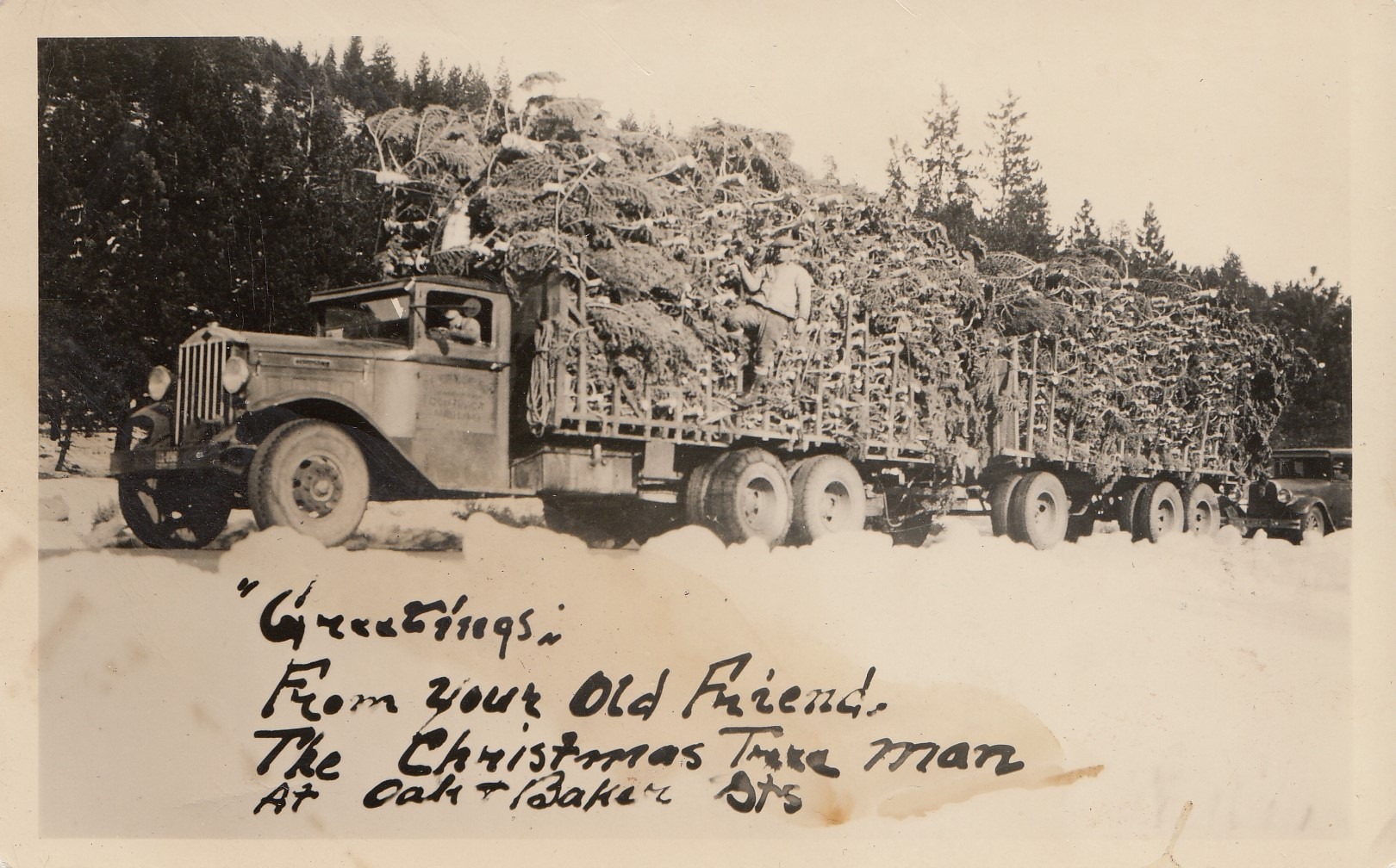 Greetings From Your Old Friend The Christmas Tree man. At Oak and Baker Sts