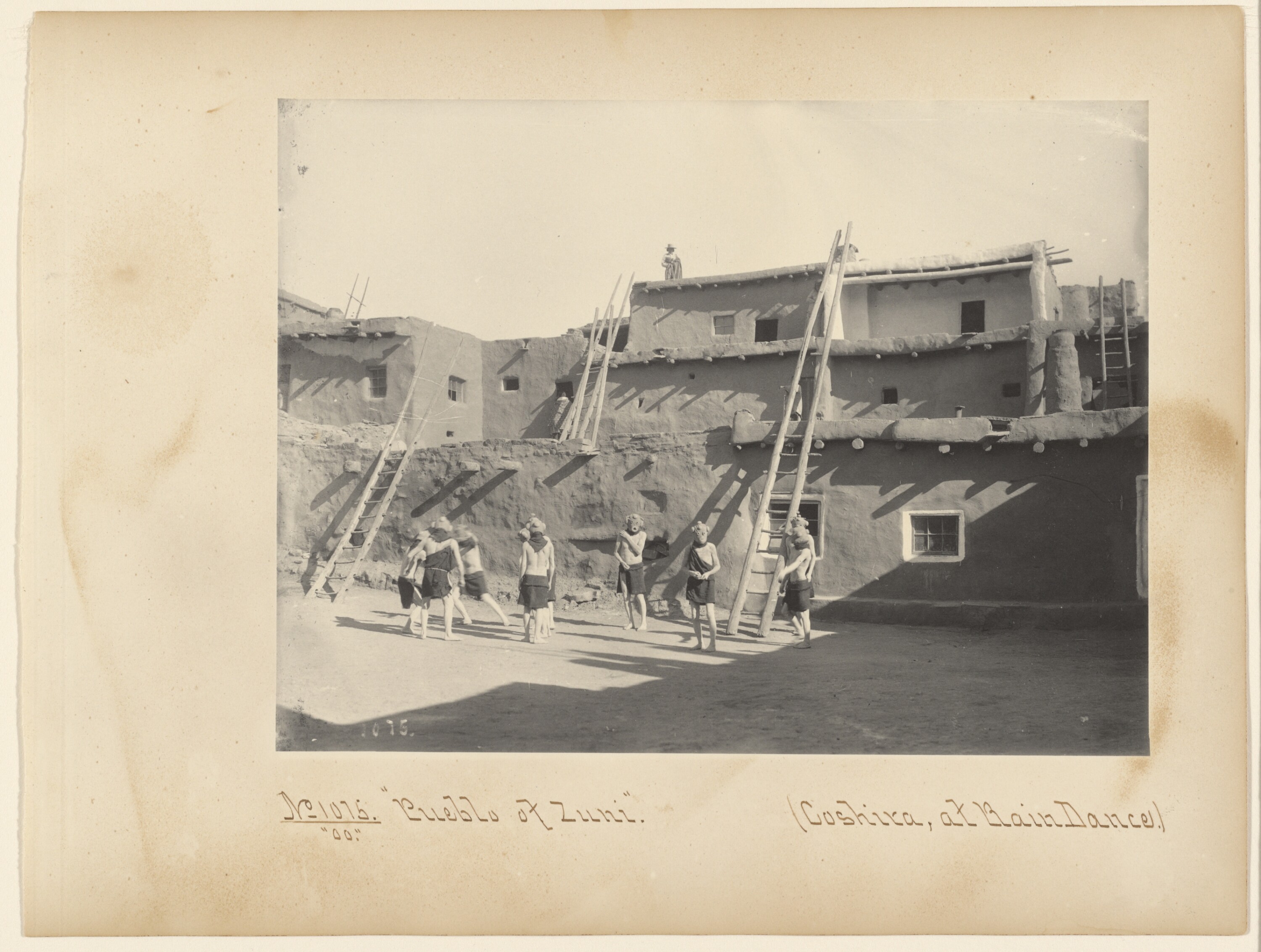 Inscription: Inscribed in negative: "1075."; inscribed recto sheet in ink: "No 1075./"00." "Pueblo of Zuni." (Coshira, at Rain Dance.)". Secondary Inscription: Inscribed verso sheet in pencil by an unknown hand: "38"; inscribed verso sheet in pencil by Wagstaff Collection cataloger: "Vroman-7".