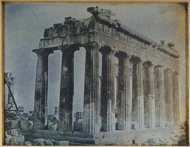 Full view of the great Doric temple dedicated to Athena, the patron goddess of Athens, designed and built in the fifth century BC. Heavily damaged by an explosion in 1684. Noted for the extreme refinement of its details including the slight curvature of its carefully spaced columns.