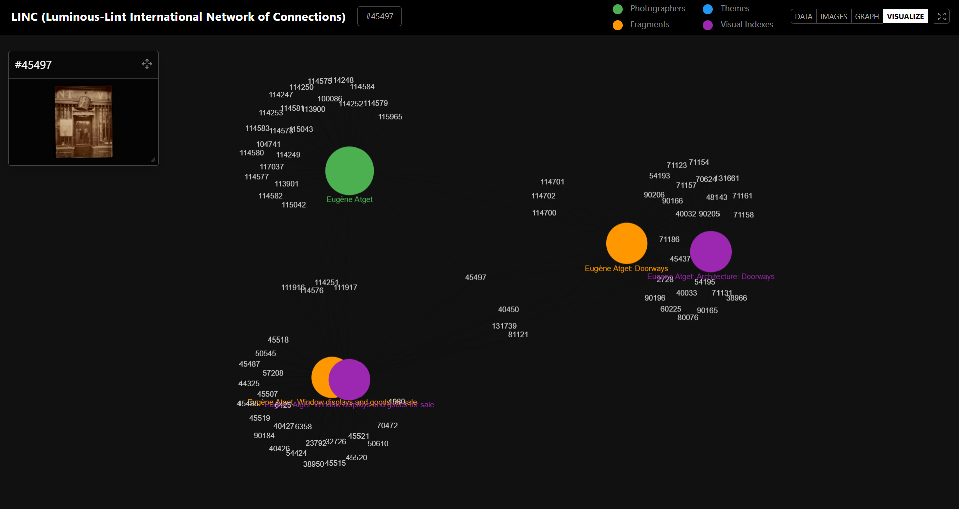 Screenshot of "Eugène Atget: Doorways"- "Visualize" on Luminous-Lint International Network of Connections)