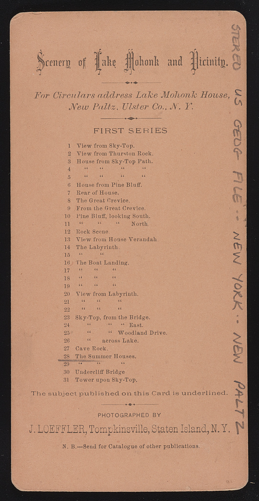 Backlist for "Scenery of Lake Mohonk and vicinity."