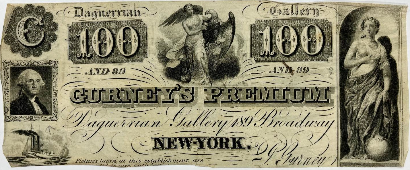 Banknote premium for "Gurney's Premium, Daguerrian Gallery 189 Broadway, New-York."