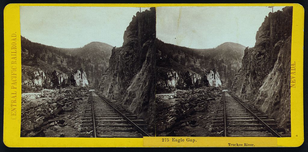 Alfred Hart 1865-1869 Eagle Gap. Truckee River [Central Pacific Railroad, California. Scenes in the Sierra Nevada Mountains. No. 275]