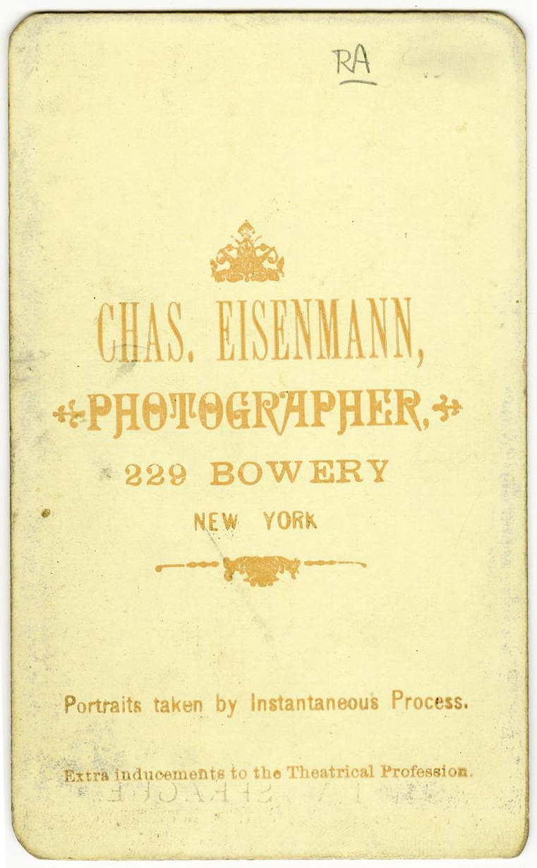 Backmark for "Chas. Eisenmann, Photographer, 229 Bowery, New York"