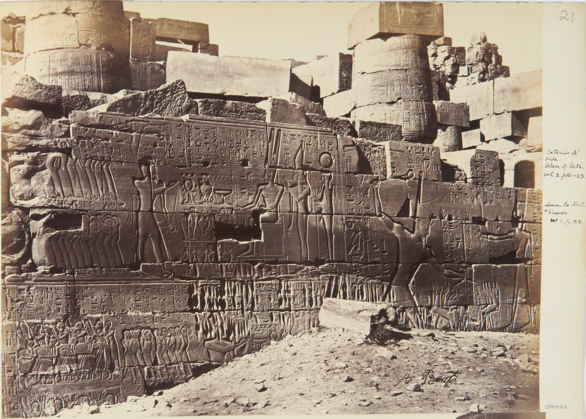 Antonio Beato 1860-1882 Exterior of wall within Great Temple of Karnak complex [Album compiled by the Reverend J N Dalton (1839-1931) and presented to King George V]