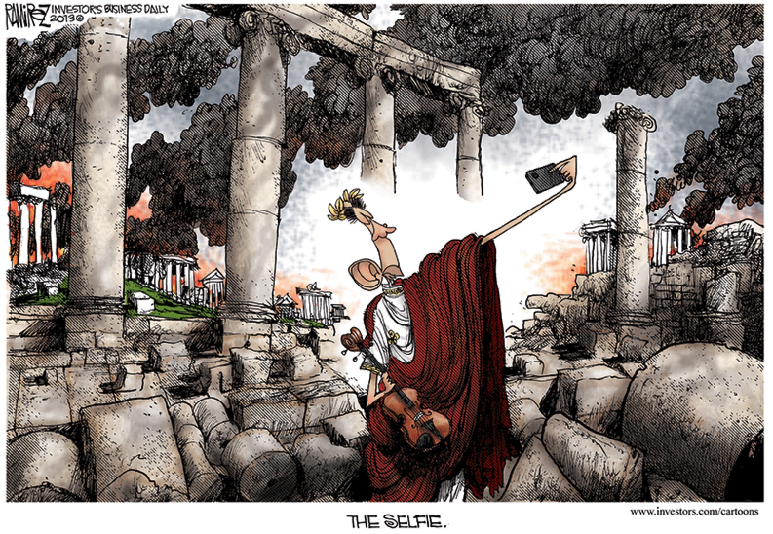 [Nero takes a selfie rather than fiddles while Rome burns down]
