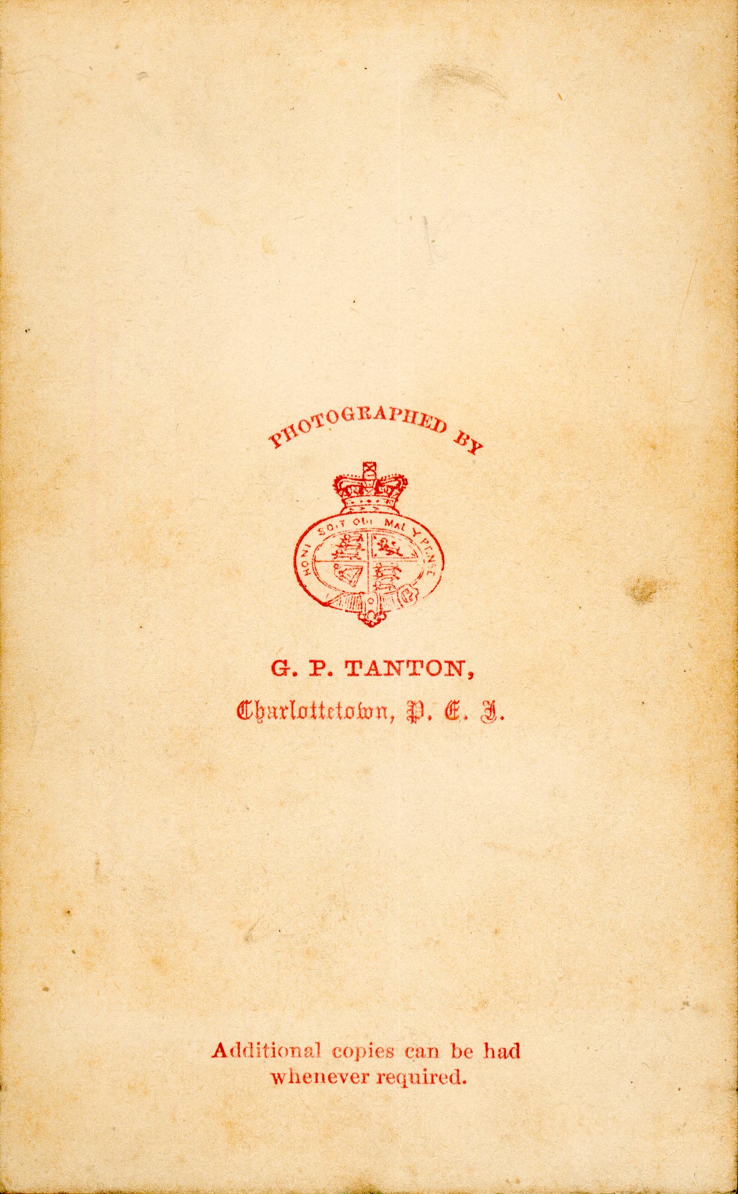 Backmark with "belt buckle" design for G.P. Tanton, Charlottetown, P.E.I., Canada