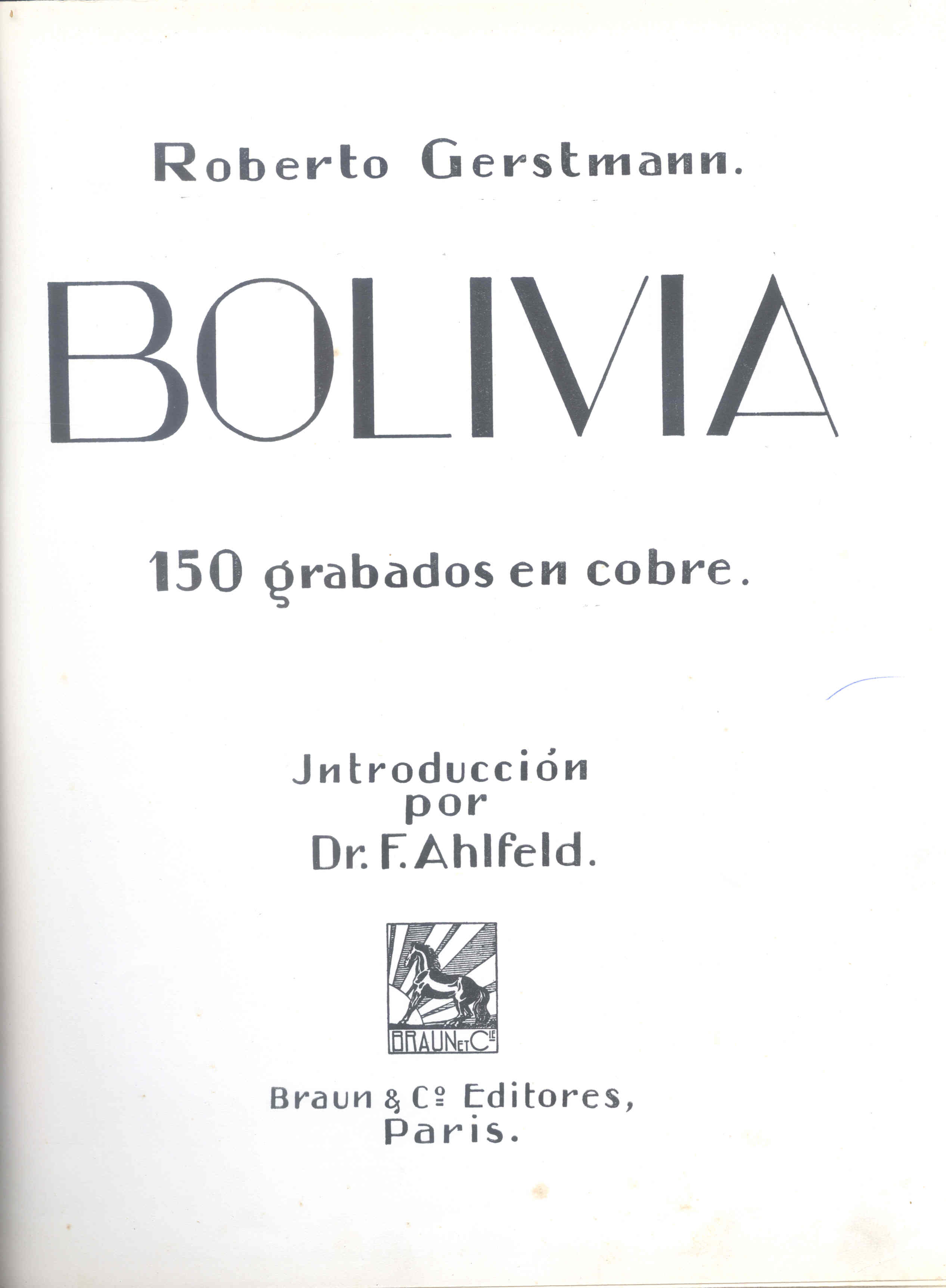 Title page of the book "Bolivia" containing the photogravures of Roberto M. Gerstmann (Paris, 1928)