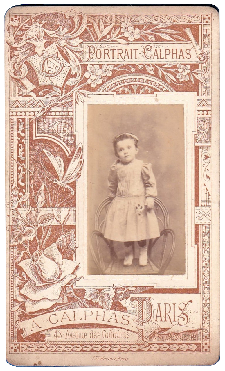 A portrait of a child with a decorative printed surround [Possibly given away as an advert for the photographer]