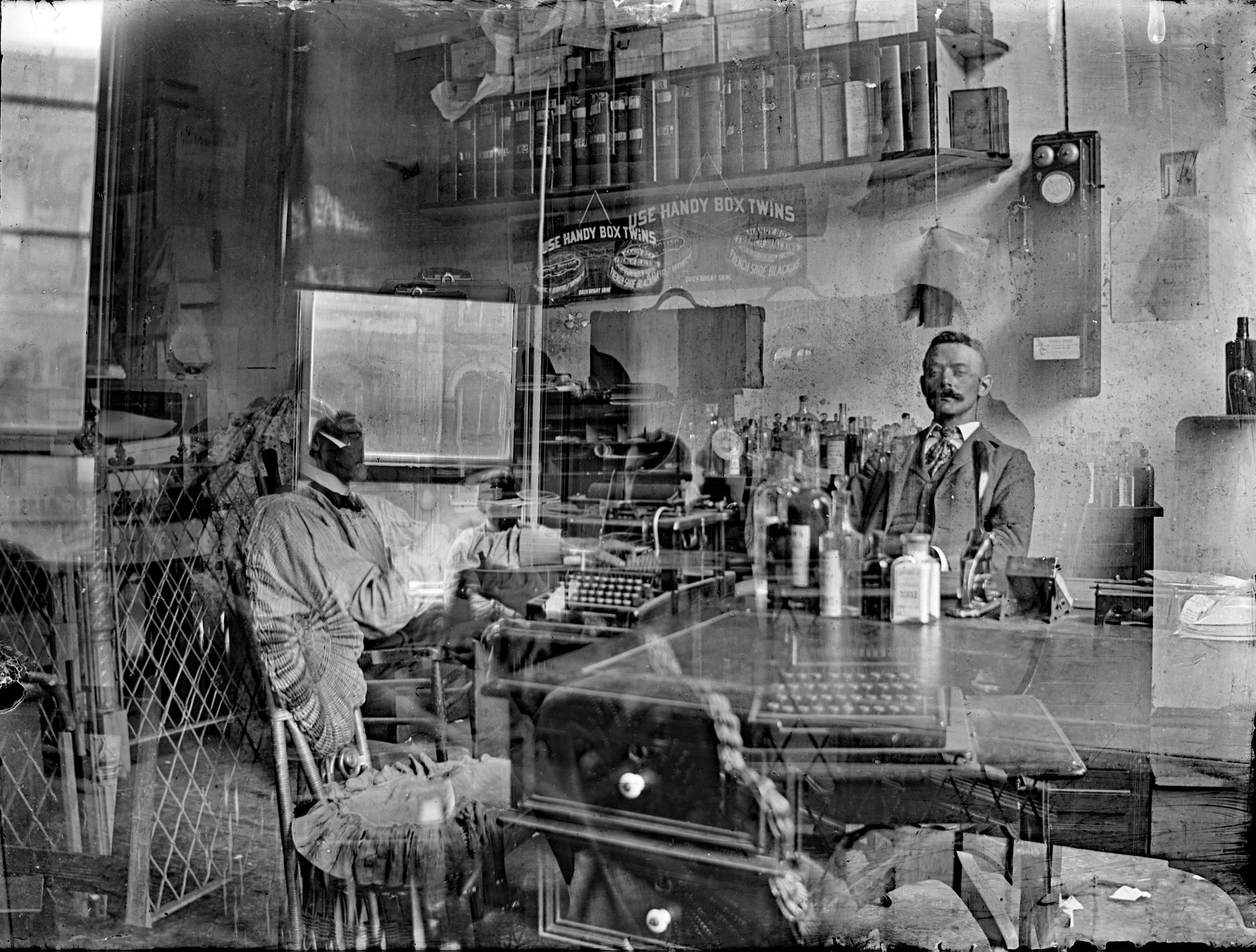 Glass plate negative, double exposure