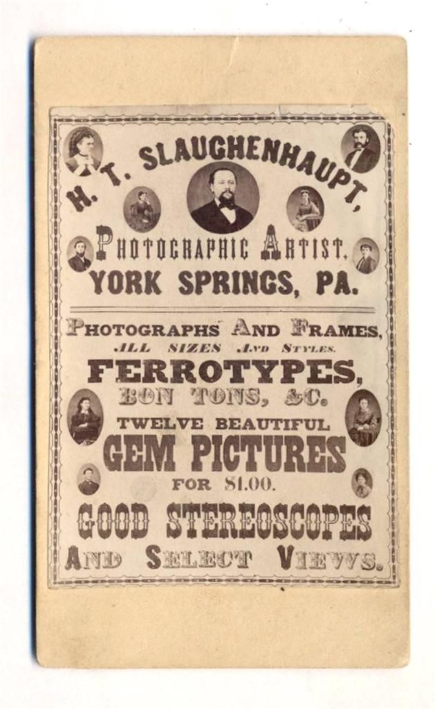 Photographs and Frames, All Sizes and Styles. Ferrotypes, Bon Tons, & C. Twelve Beautiful Gem Pictures for $1.00. Good Stereoscopes and Select Views.