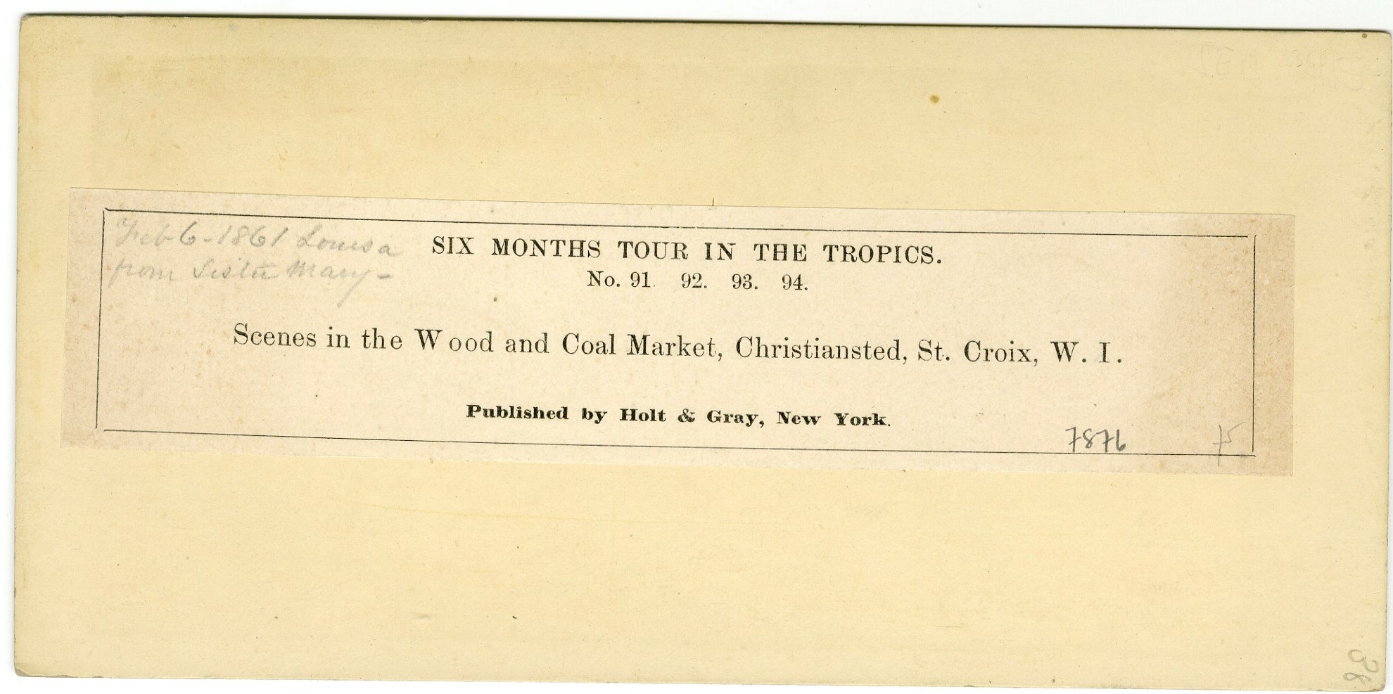 Holt & Gray 1861 (or earlier) No. 93. Scenes in the Wood and Coal Market, Christiansted, St. Croix, W.I.
