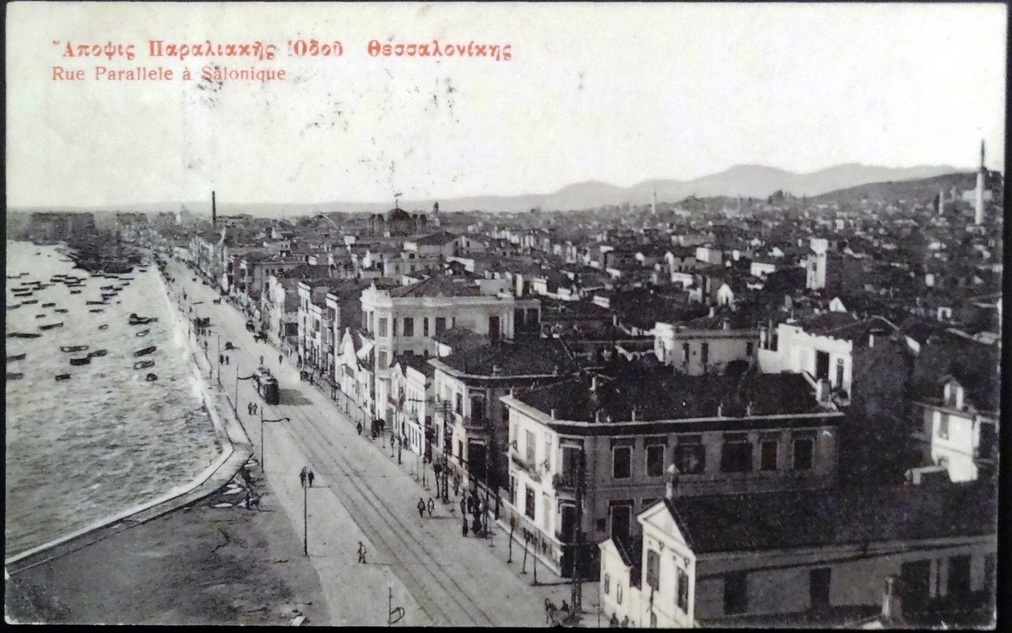 Postcard Private collection of Angelos Papaioannou (Theodoros Natsinas, 31 July 2021) Electric streetcars operated between 1908 and 1926; there are at least 4 minarets in the frame, all minarets in the city except one were demolished in 1926; the chimney at the front was burned down in 1917; in the distance there is a building (not the church) with a globe on the roof which was completed in 1911. So this narrows the possible dates between 1911 and 1917.