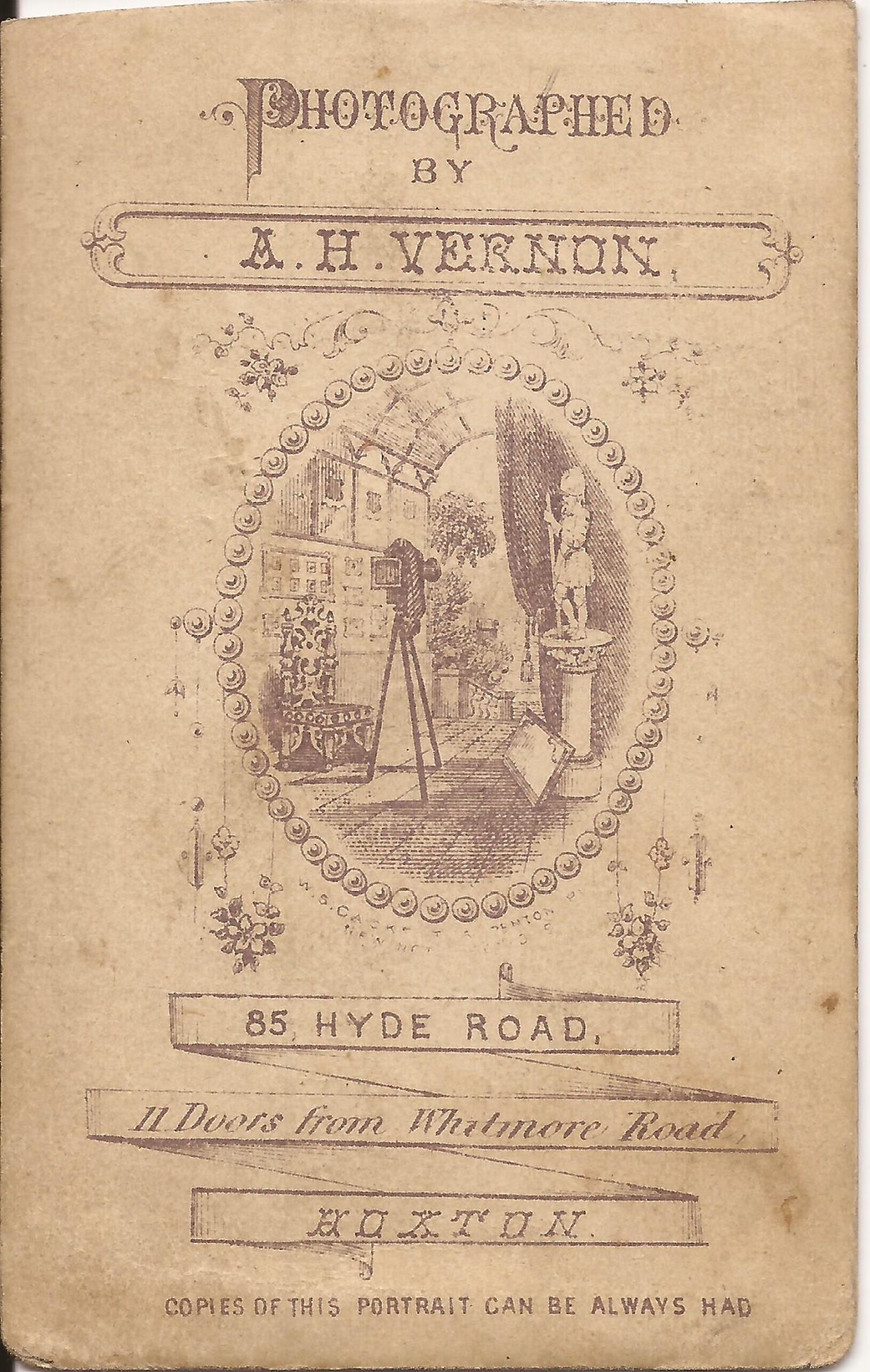 Backmark for "A. H. Vernon, 85 Hyde Road, Hoxton" [England]