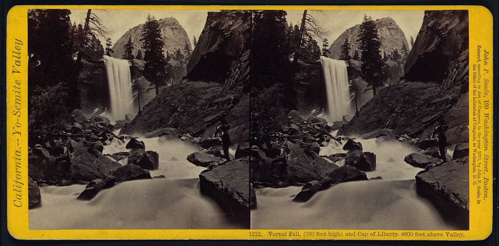 Vernal Fall, (350 feet high) and Cap of Liberty 4600 feet above valley
