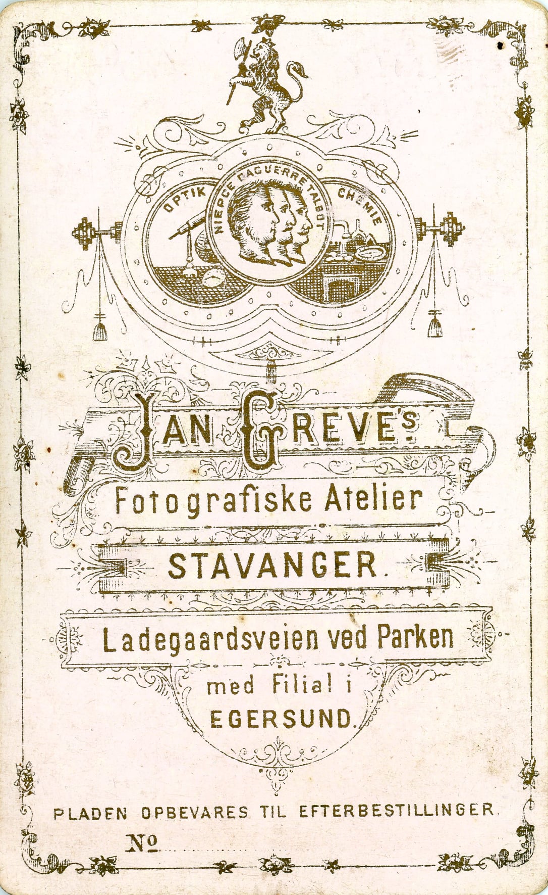 Backmark for "Jan Greve's Fotografiske Atelier, Stavanger"