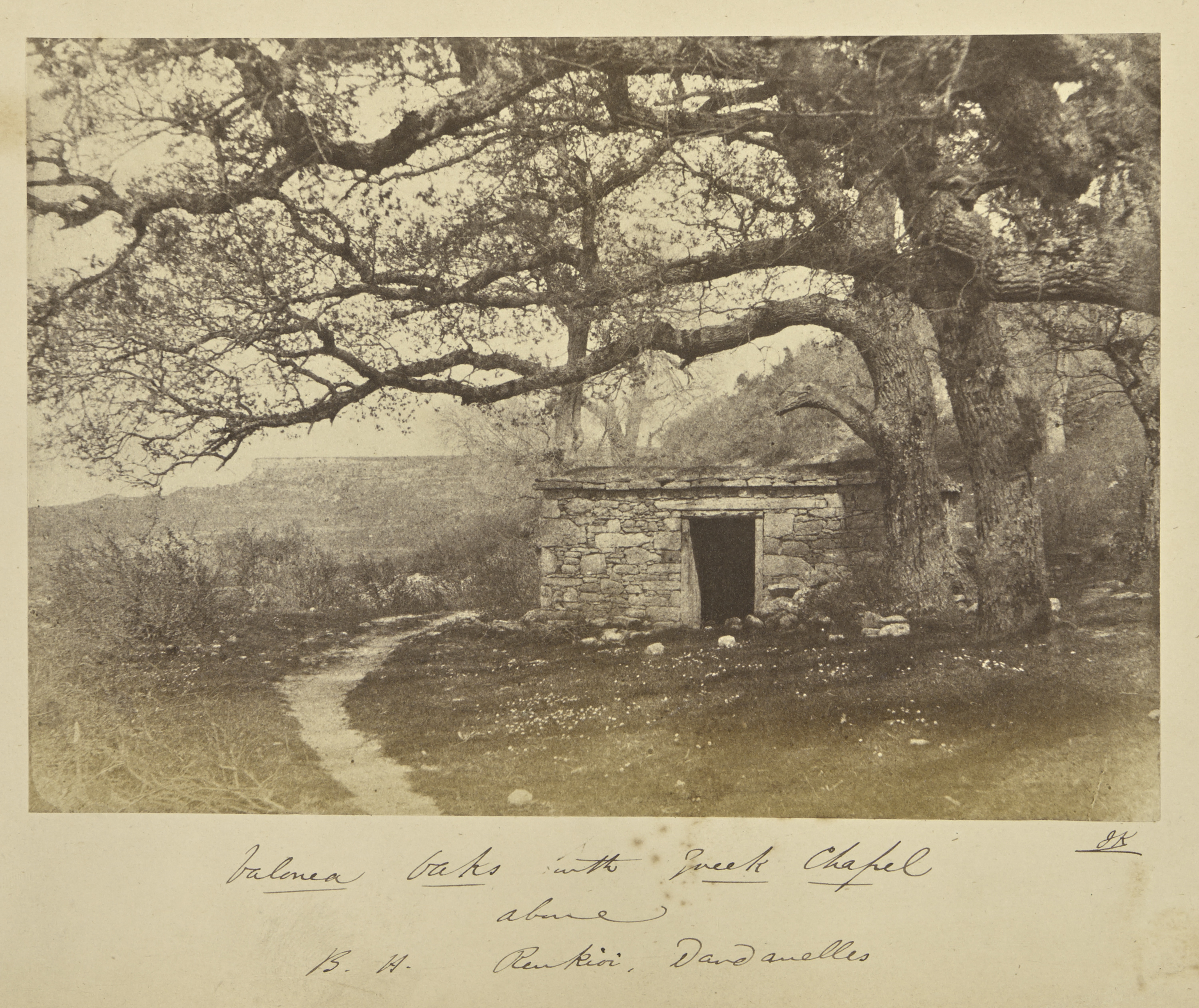 Valonea Oaks with Greek Chapel above. B.H. Renkioi, Dardanelles