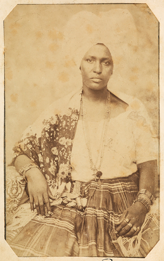 Tradeswomen are depicted with a teapot on a table, a comb, a basket laden with bottles or wares carefully balanced on their heads; maids hold embroidered cloth and a wet nurse is shown with an infant. A native lady-in-waiting (and a young child) attend to a gorgeously dressed aristocrat, who wears a long veil. The hand-colored prints reinforce the sense of individual style associated with these remarkable figures; two of the indigenous women (one of whom wears a cross), simply pose in the studio sans tradewomen's objects.