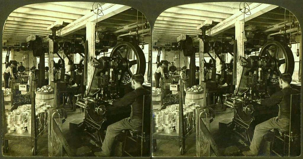 Making stereoscopes - In the Press Room of the Metal Working Department of H.C. White Co. [North Bennington, Vermont, USA]