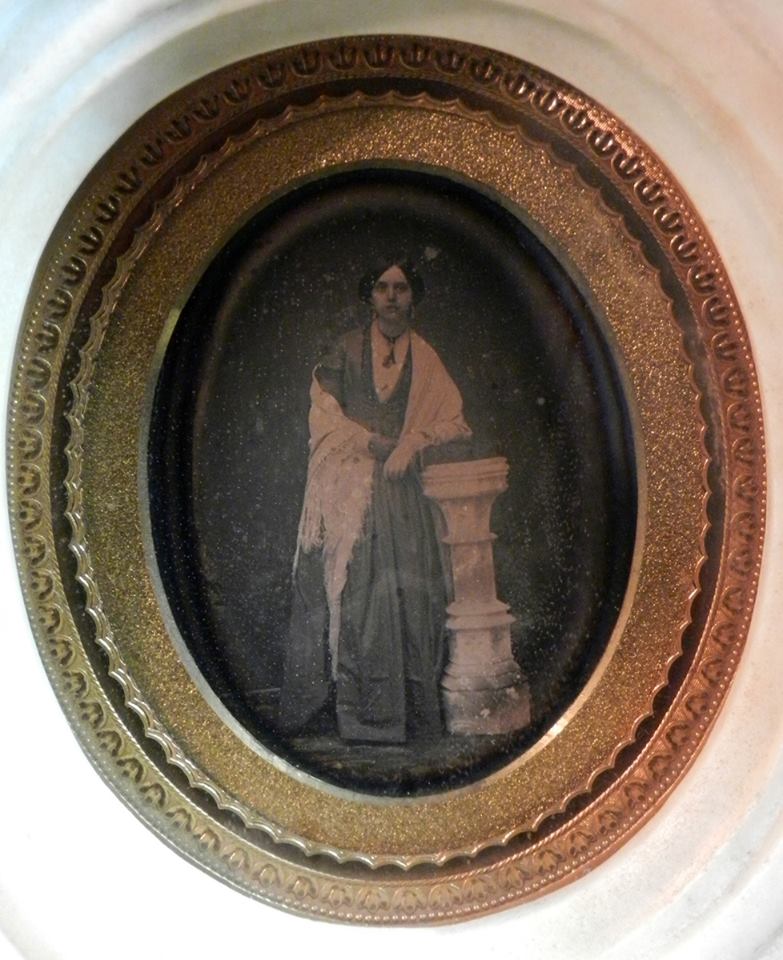 Stone memorial with a daguerreotype of a woman