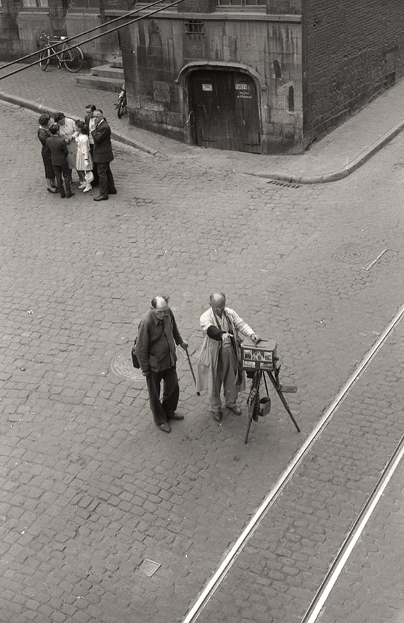 Street photographer outside the shop of photographer Marcel G. Lefrancq in Mons (Belgium)