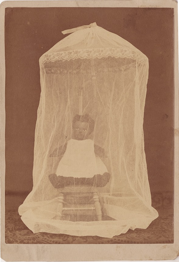 Unidentified photographer n.d. A black doll within a child's mosquito net