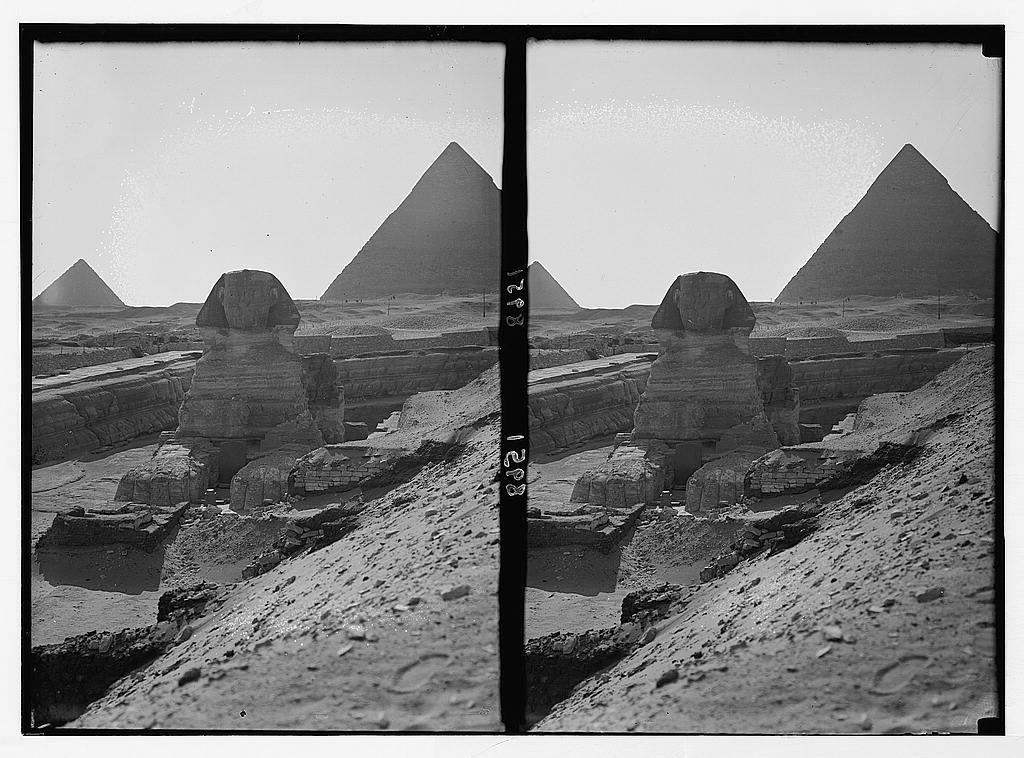 Egypt. Sphinx & pyramids. The Sphinx (full face) & two pyramids