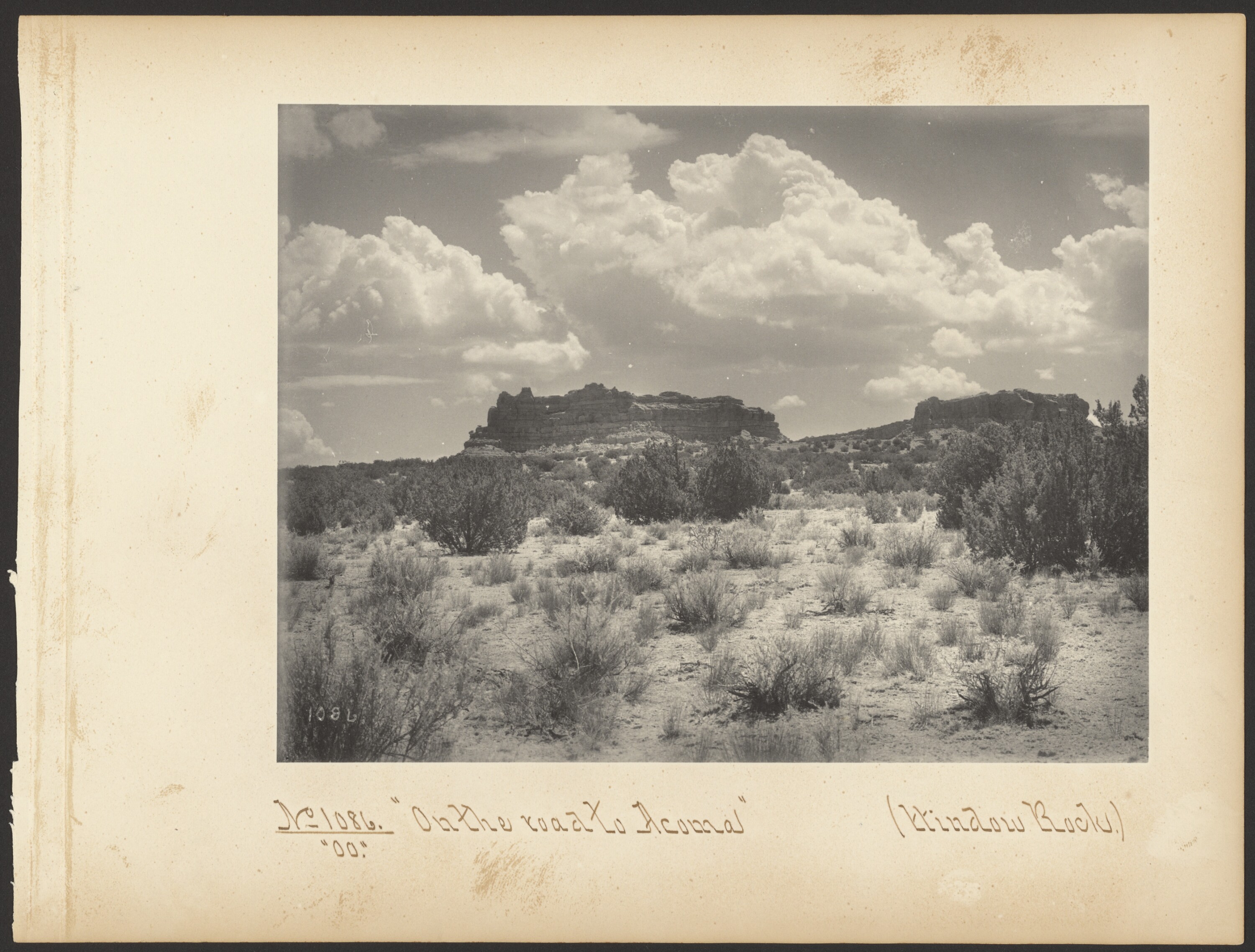 Inscription: Inscribed in negative: "1086."; inscribed recto sheet in ink: "No 1086./"00." "On the road to Acoma" (Window Rock.)". Secondary Inscription: Inscribed verso sheet in pencil by an unknown hand: "47"; inscribed verso sheet in pencil by Wagstaff Collection cataloger: "Vroman-10".