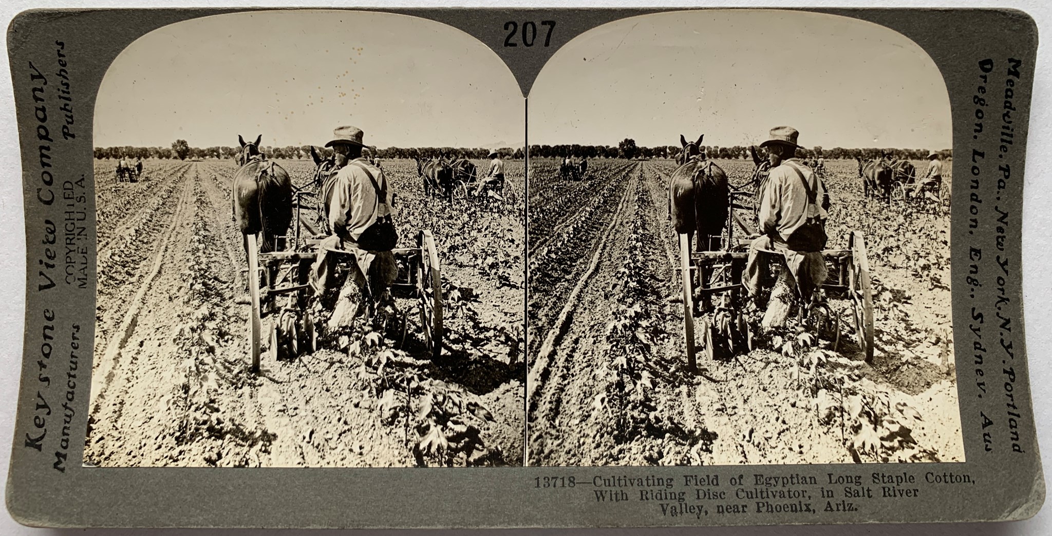 Cultivating Field of Egyptian Long Staple Cotton. With Riding Disc Cultivator, in Salt River Valley, near Phoenix, Ariz.