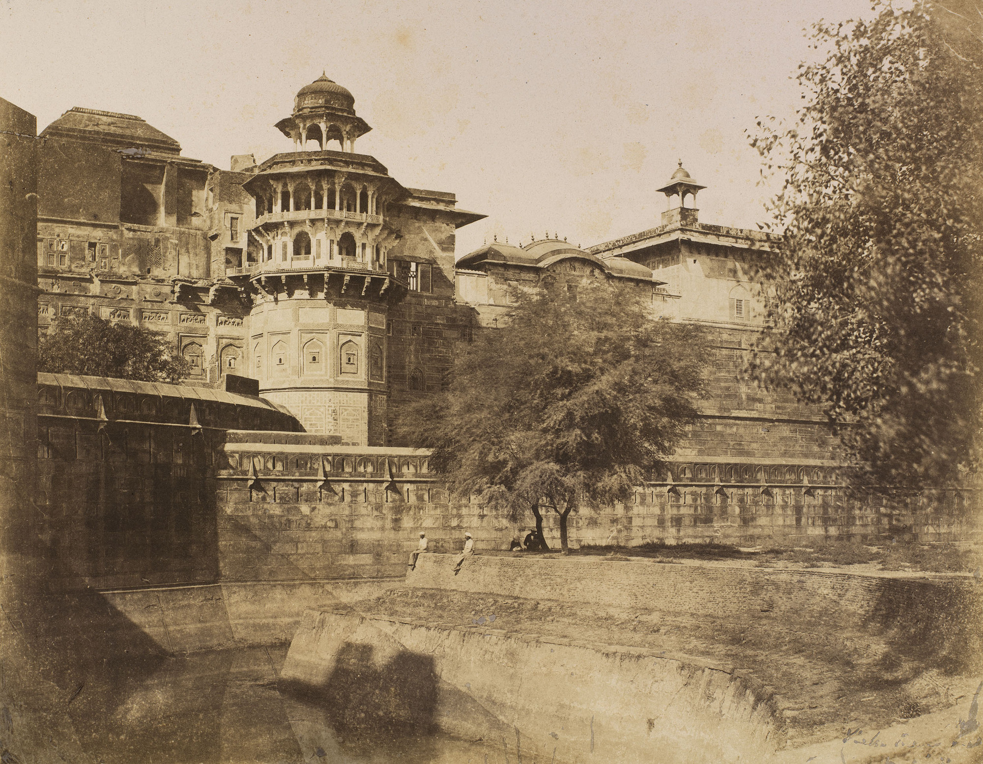 This is one of a series of photographs of Agra by Dr John Murray which were published in a volume with accompanying captions by J Middleton. Murray was an East India Company doctor who used waxed-paper negatives to produce photographs of the Mughal architecture of Agra and the surrounding area.