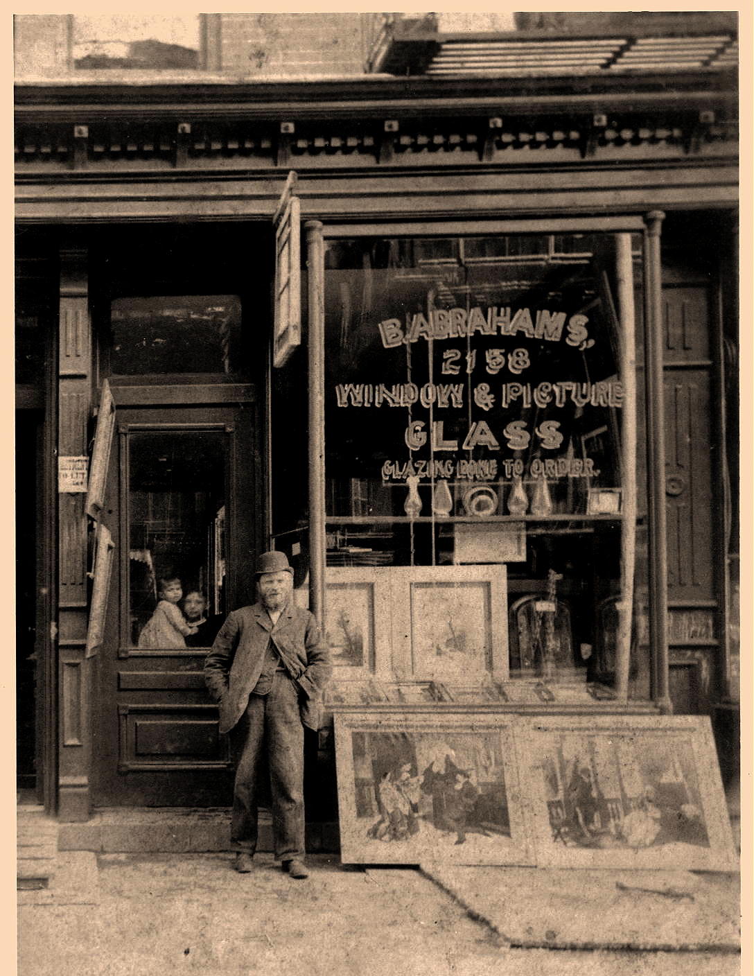 Barnett Abrahams in front of his store at 2158 1st Ave., New York