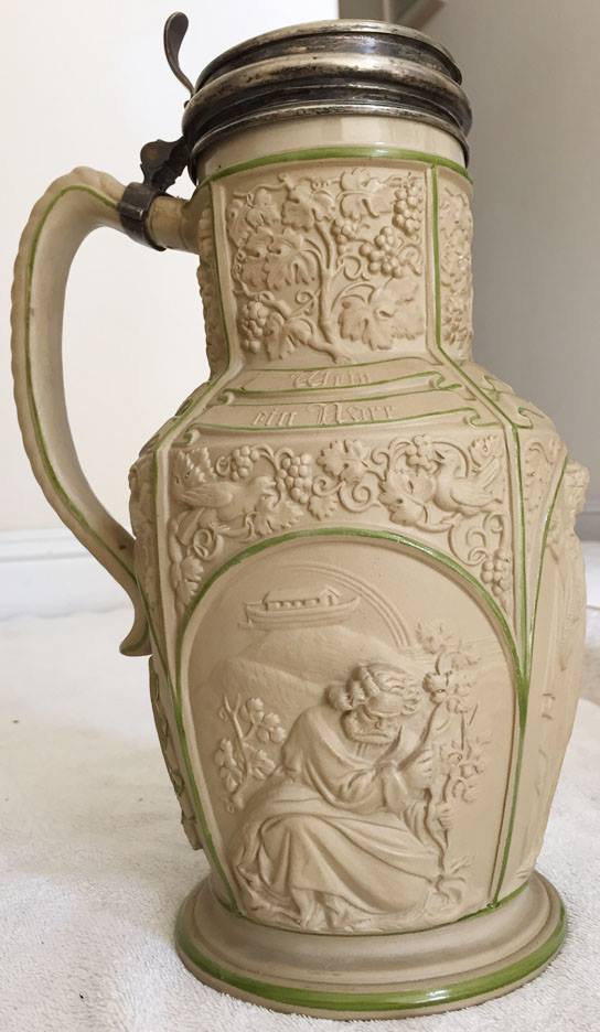 A German Beer Stein with daguerreotype portrait of a young woman