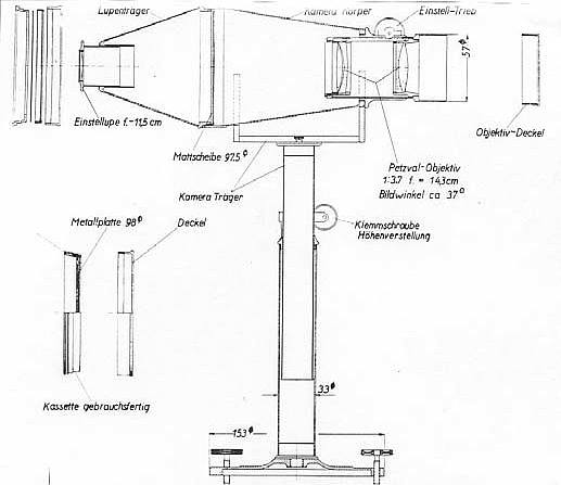 Scheme January 1841. Voigtländer & Sohn camera with Petzval lens 1: 3,7 143 mm (Voigtländer Bildarchiv, Niedersächs, Staatsarchiv Wolfenbüttel)