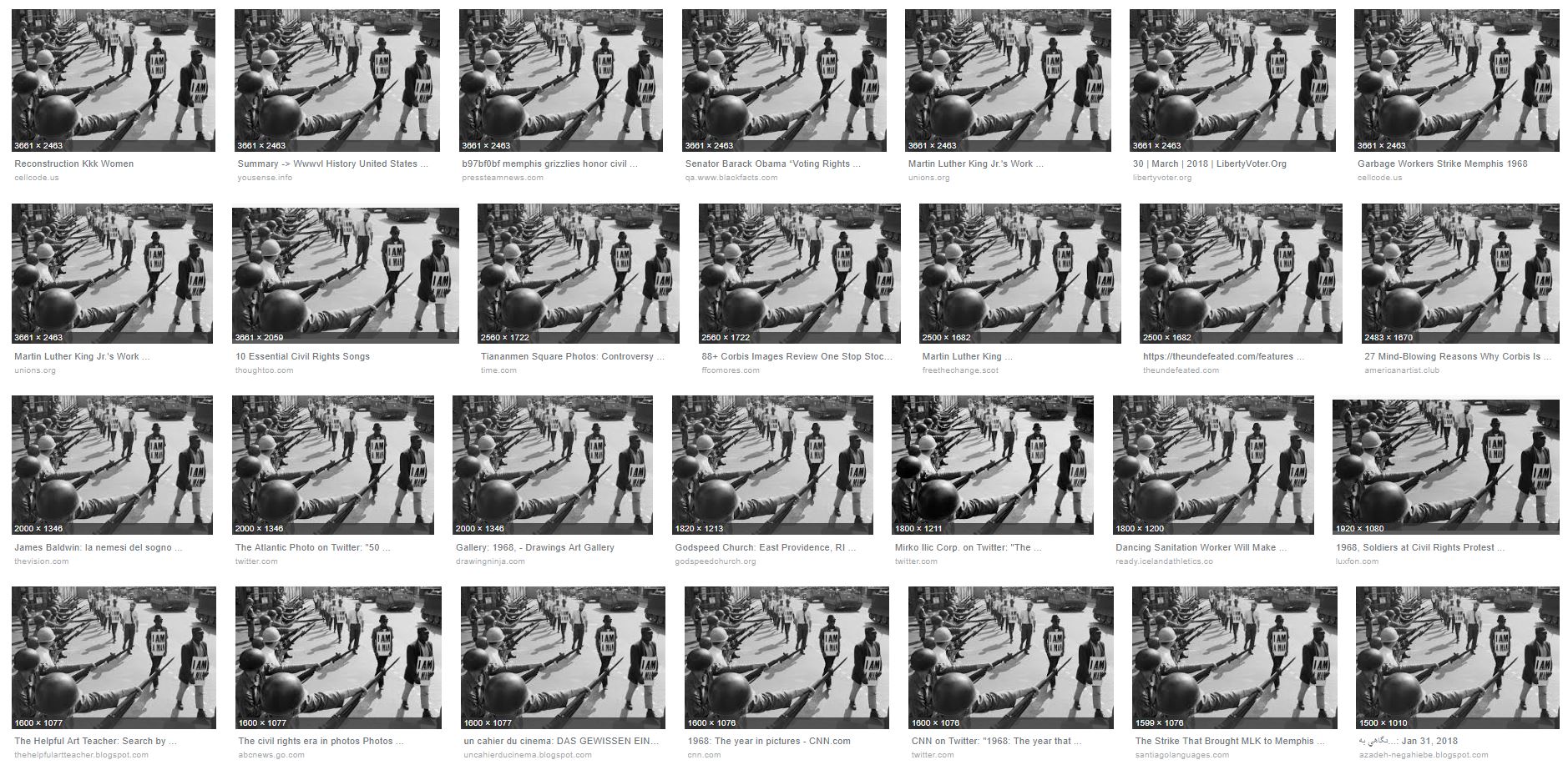 Screen capture of U.S. National Guard troops block off Beale Street as civil rights marchers wearing placards reading, I AM A MAN,' pass by on March 29, 1968
