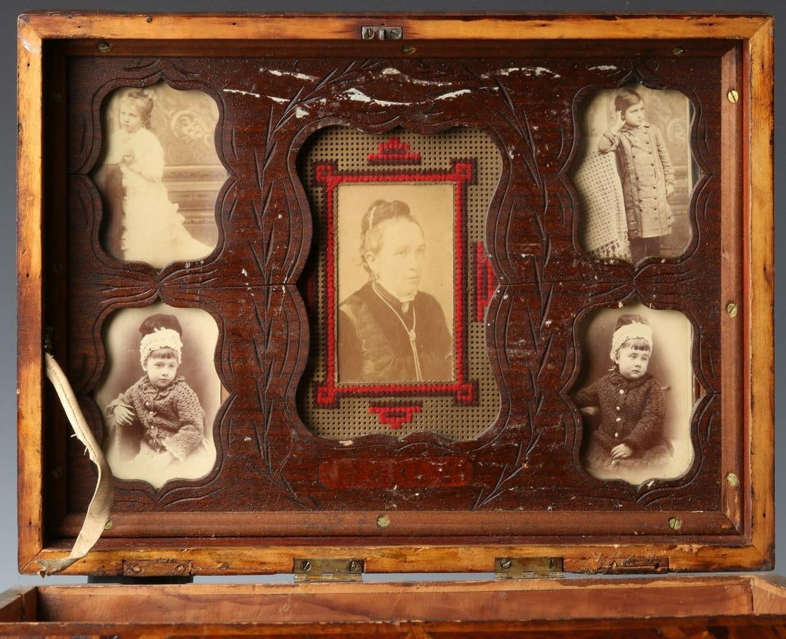 Unidentified maker 19th century (late) American Folk Art Marquetry Sewing Box