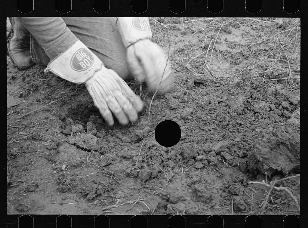 Carl Mydans 1936, March [Untitled photo, possibly related to: Planting locust root cutting, Natchez Trace Project, near Lexington, Tennessee]