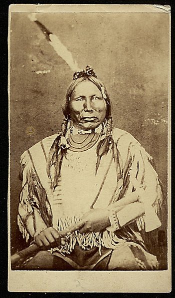 CDV with Jackson Brothers, Omaha, imprint, but probably made in 1866-67 by an unknown photographer. He was a member of the 1867 delegation to Washington. Mis-identified in pencil verso as "Kicking Bear."