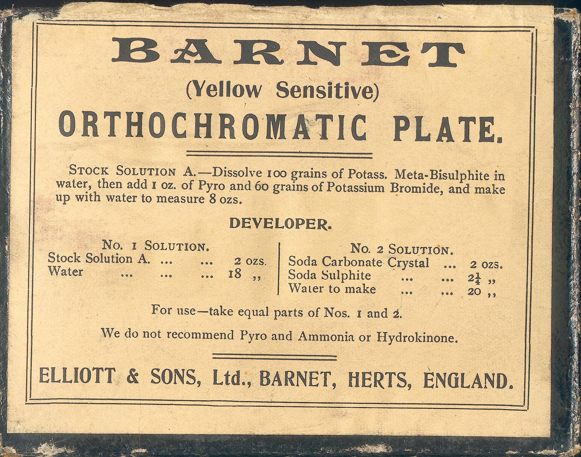 Barnet Orthochromatic plates