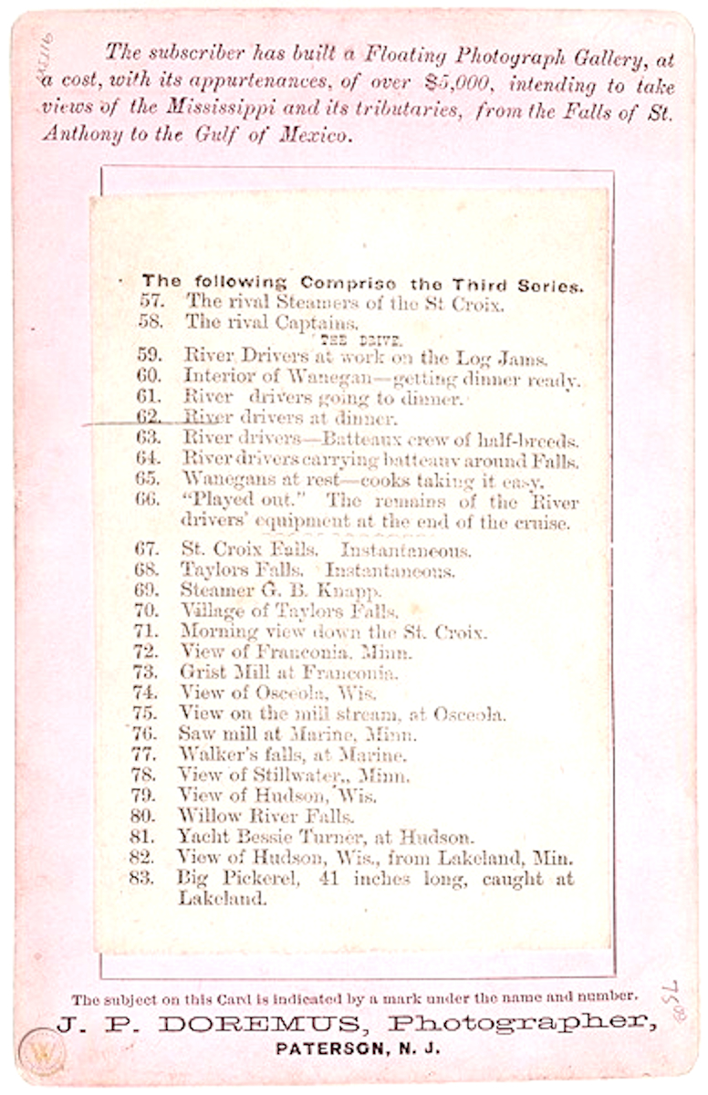 Backlist for "J. P. Doremus, Photographer, Paterson, N. J." - "The following Comprise the Third Series" [57-83]