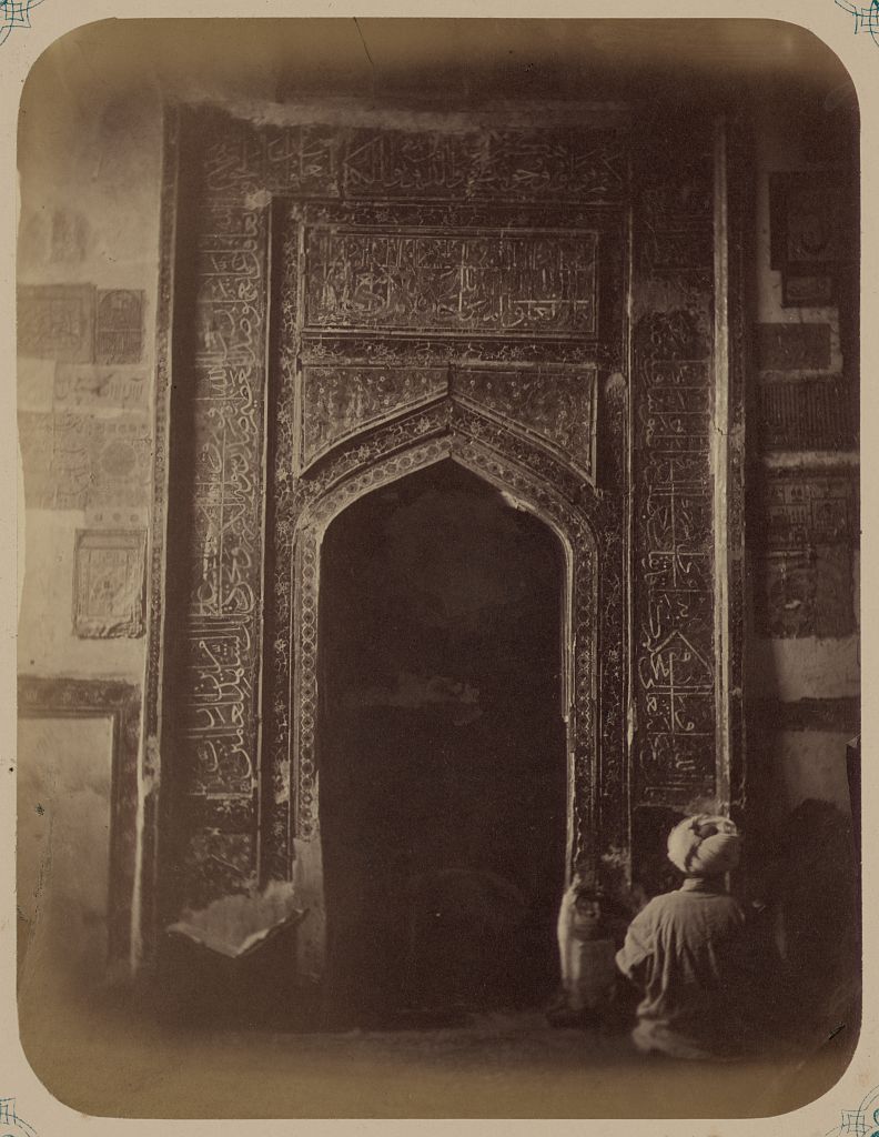 N.V. Bogaevskii 1871-1872 Antiquities of Samarkand. Tomb of the Saint Kassim ibn Abass (Shakh Zinde) and adjacent mausoleums. Mosque (khanaka) of Shakh Zinde. View of the mihrab prayer niche in the Rauza Mosque (in front of Shakh Zinde) [Turkestan Album]
