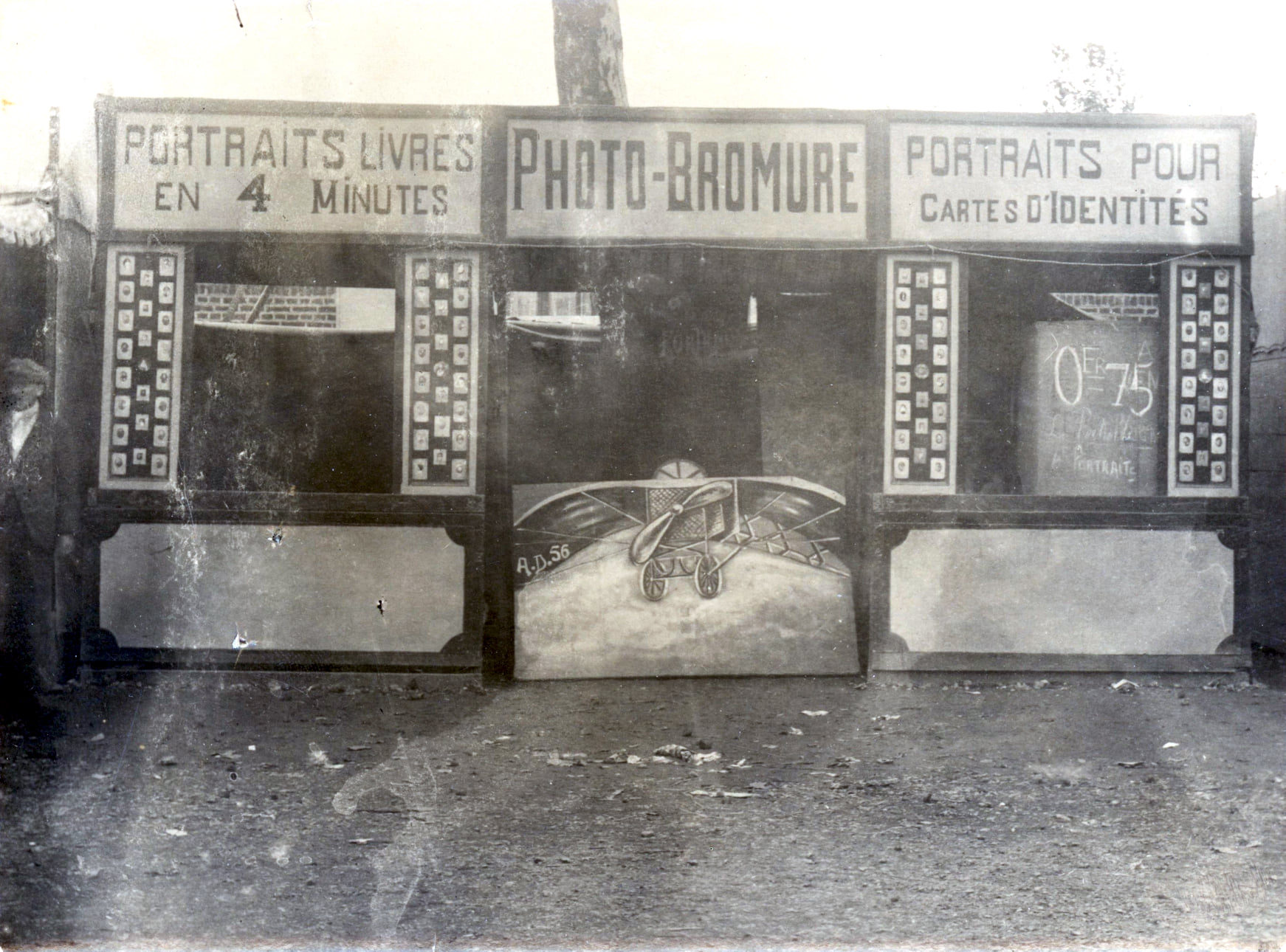 "Photo-Bromure" - Carnival photo booth with airplane arcade prop, France.