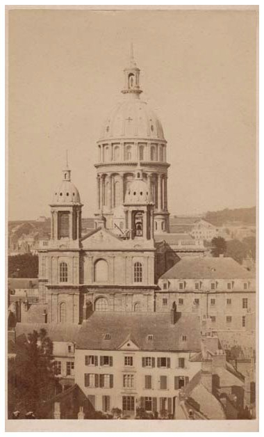 Carte de visite Private collection of Laure Deratte BenoƮt-Agathon Haffreingue, a priest and architect, raised funds to rebuild the destroyed cathedral of Our Lady of the Sea of Boulogne-sur-Mer. The dome was completed in 1854 and the western towers in the 1870s and it is now the Basilica of Notre-Dame de Boulogne