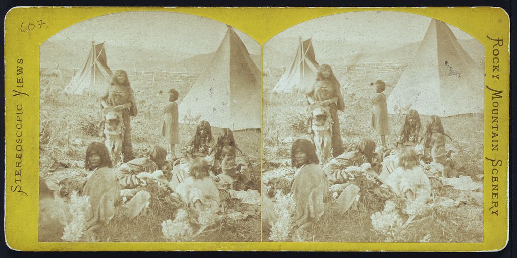 A.J. Russell 1868-1870 Indian squaws and papooses [Union Pacific R.R. views, across the continent, west from Omaha. - No. 15. Groups of Indians Series.]