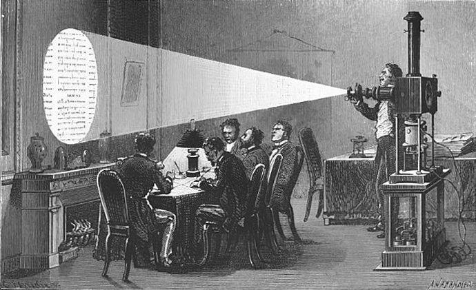 Unidentified artist n.d. Enlarging microscopical despatches during the Siege of Paris