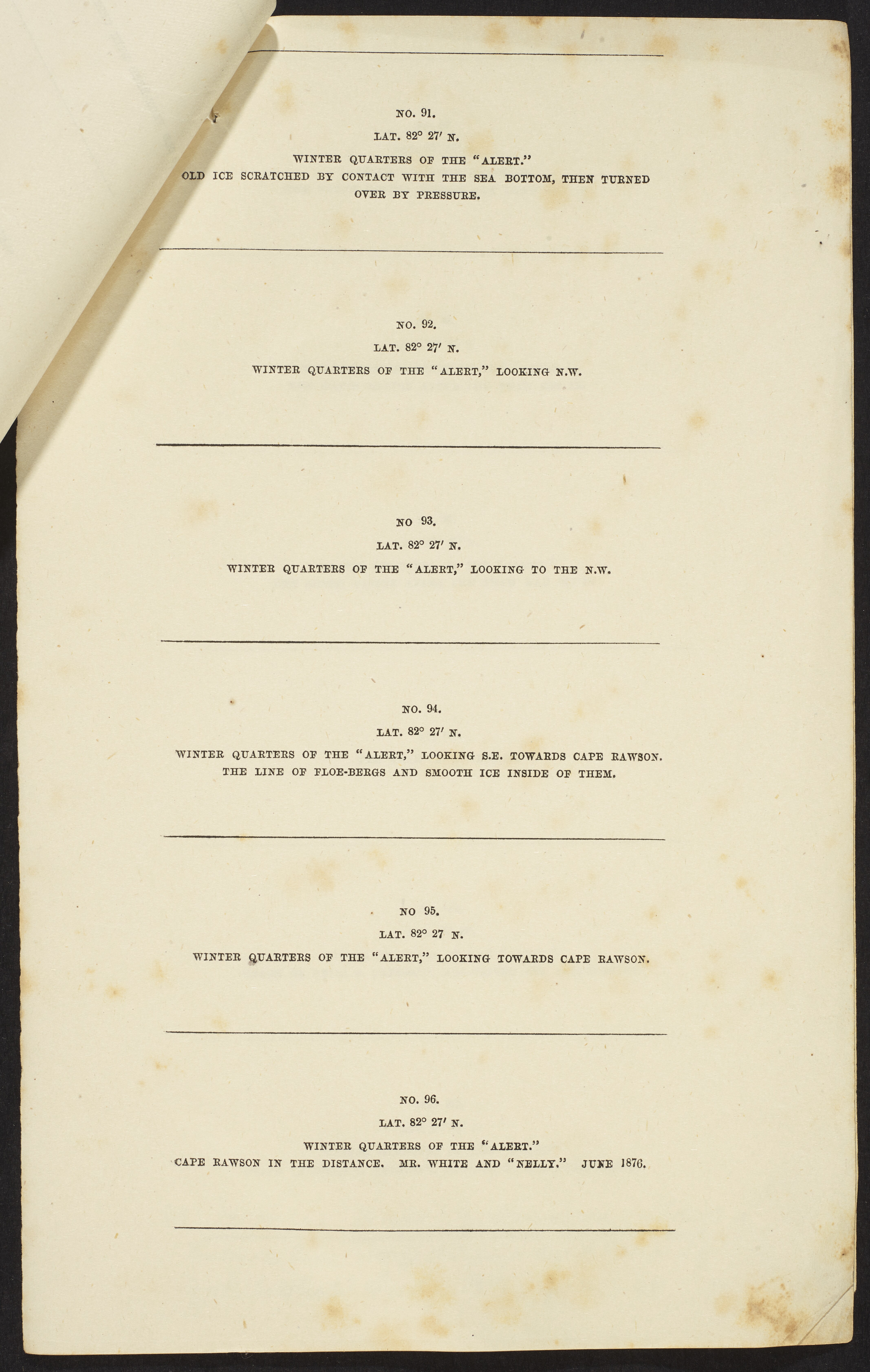 (Alan Griffiths, 27 January 2026) The photographer is not given on the Det Kongelige Bibliotek (The Royal Library) website but was, based on the The Royal Collection (UK), Thomas Mitchell. He was the photographer for the British Arctic Expedition, commanded by Captain George Nares (1875-1876). He trained at the Army School of Photography in Chatham and was on the "Discovery". The photographs were shown at the Photographic Society of Great Britain exhibition in 1877. The other photographer on this expedition was George White on "Alert".
