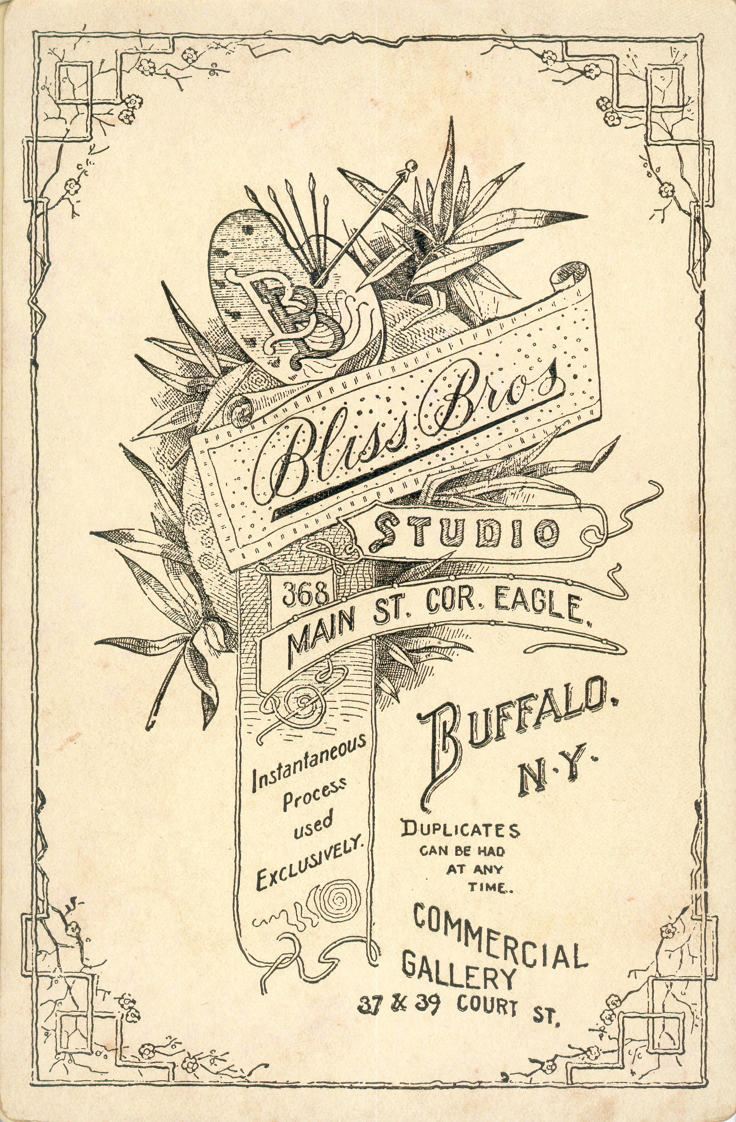 Backmark for "Bliss Bros. Studio, 368 Main St. cor Eagle, Buffalo, N.Y."