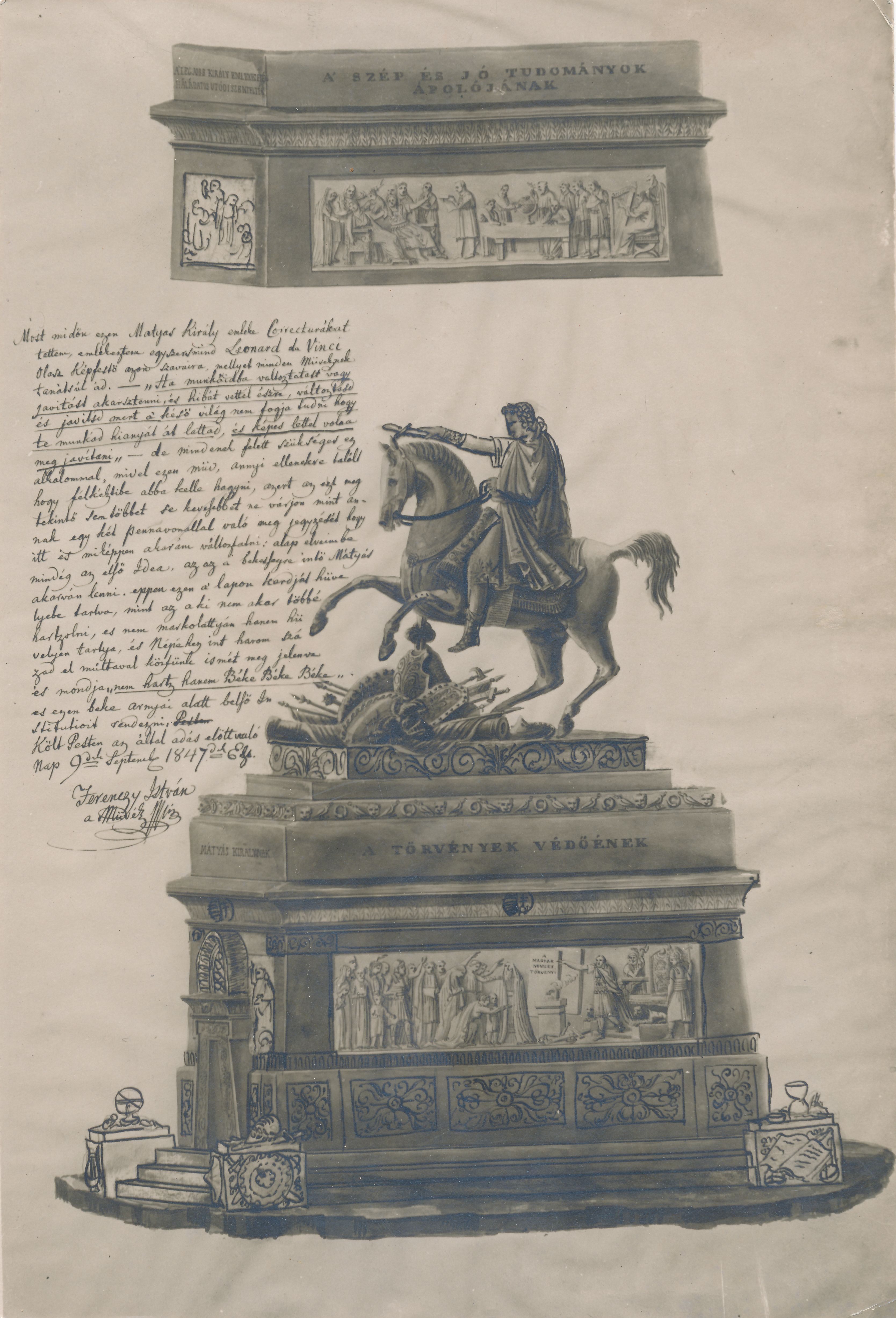 István Ferenczy (1792–1856) was the most important Hungarian sculptor in the first half of the nineteenth century. In 1840, he was commissioned to design a monument of King Matthias. He made several plans and studies for this work, which had many supporters, but ultimately—and primarily for financial reasons—the monument failed to materialize. After the battles of the domestic intellectual life, the plans were finally abandoned, and the artist went bankrupt. In 1846, he was forced to sell his studio in the Buda Castle district and he destroyed the plaster casts kept there. Ferenczy retreated to his hometown of Rimaszombat (today, Rimavska Sobota in Slovakia) where he lived the remainder of his days in relative obscurity.