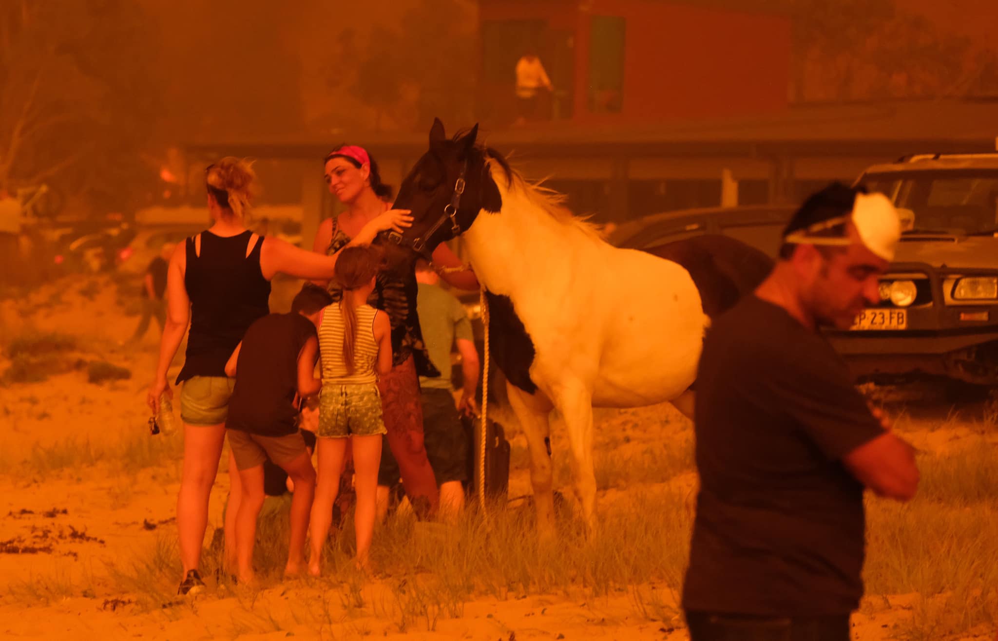 Malua Bay, NSW, Australia with people avoiding the vast bushfires taking place nearby