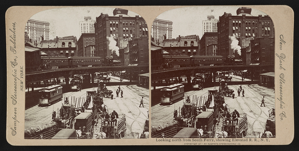 Looking north from South Ferry, showing elevated R.R., N.Y.