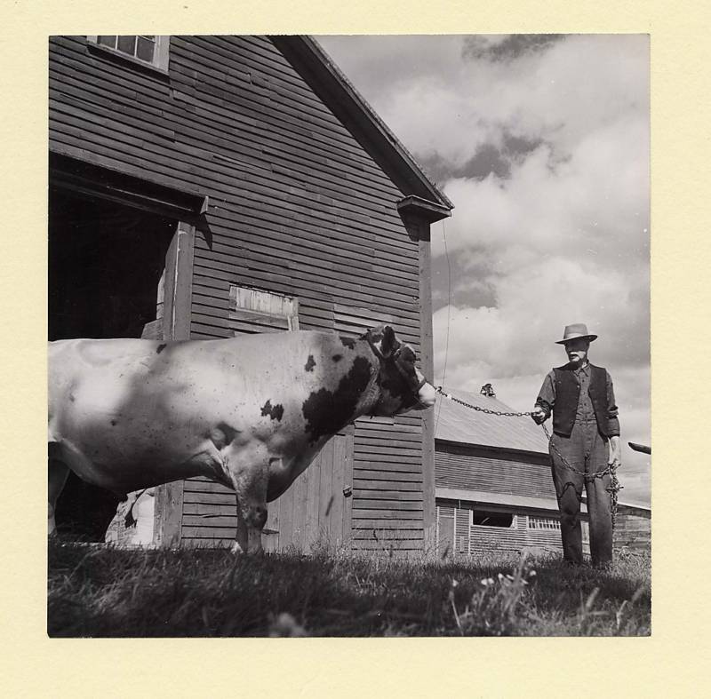 Mr S.B. Moore Leads His Bull Out To Pasture For Fresh Air